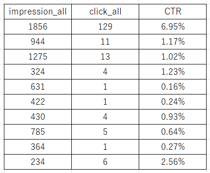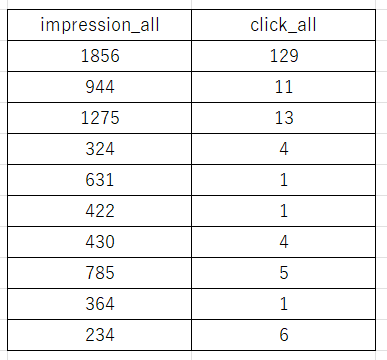 真ん中に、impression_allとclick_allと書かれている列があります。